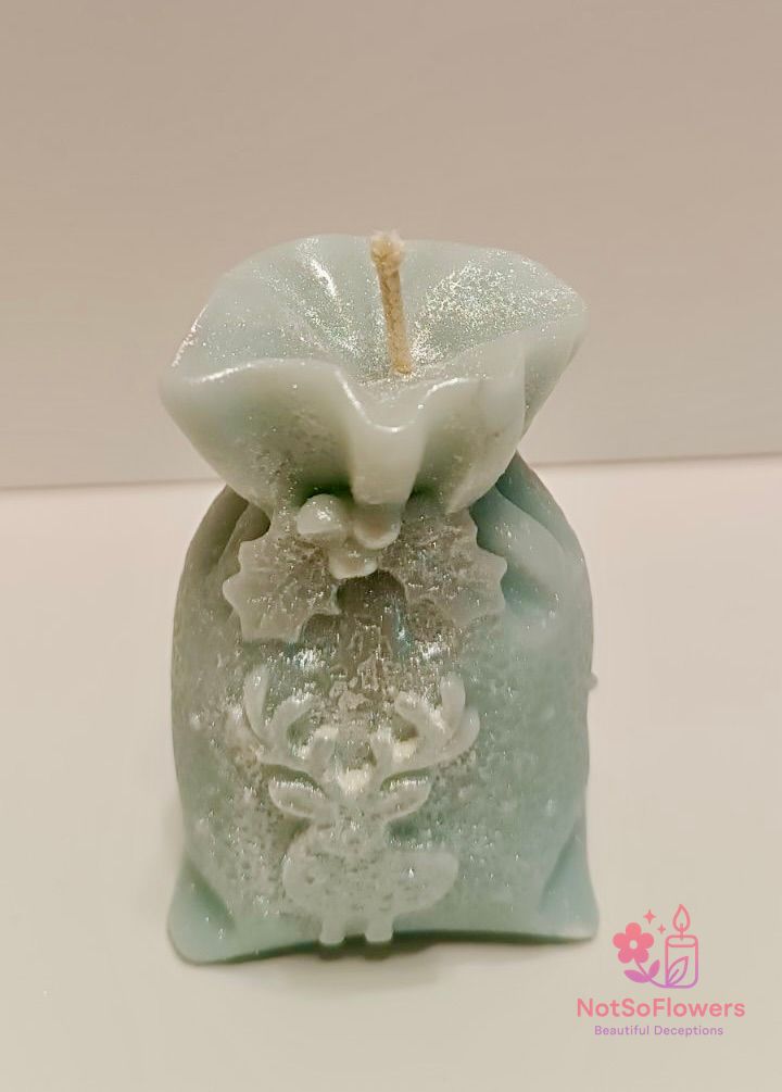 Потопете дома си в магията на празниците с нашата ръчно изработена соево-пчелна свещ под формата на Коледна торбичка . Комбинацията от чист соев восък и естествен пчелен восък създава гладко, дълго и равномерно горене.